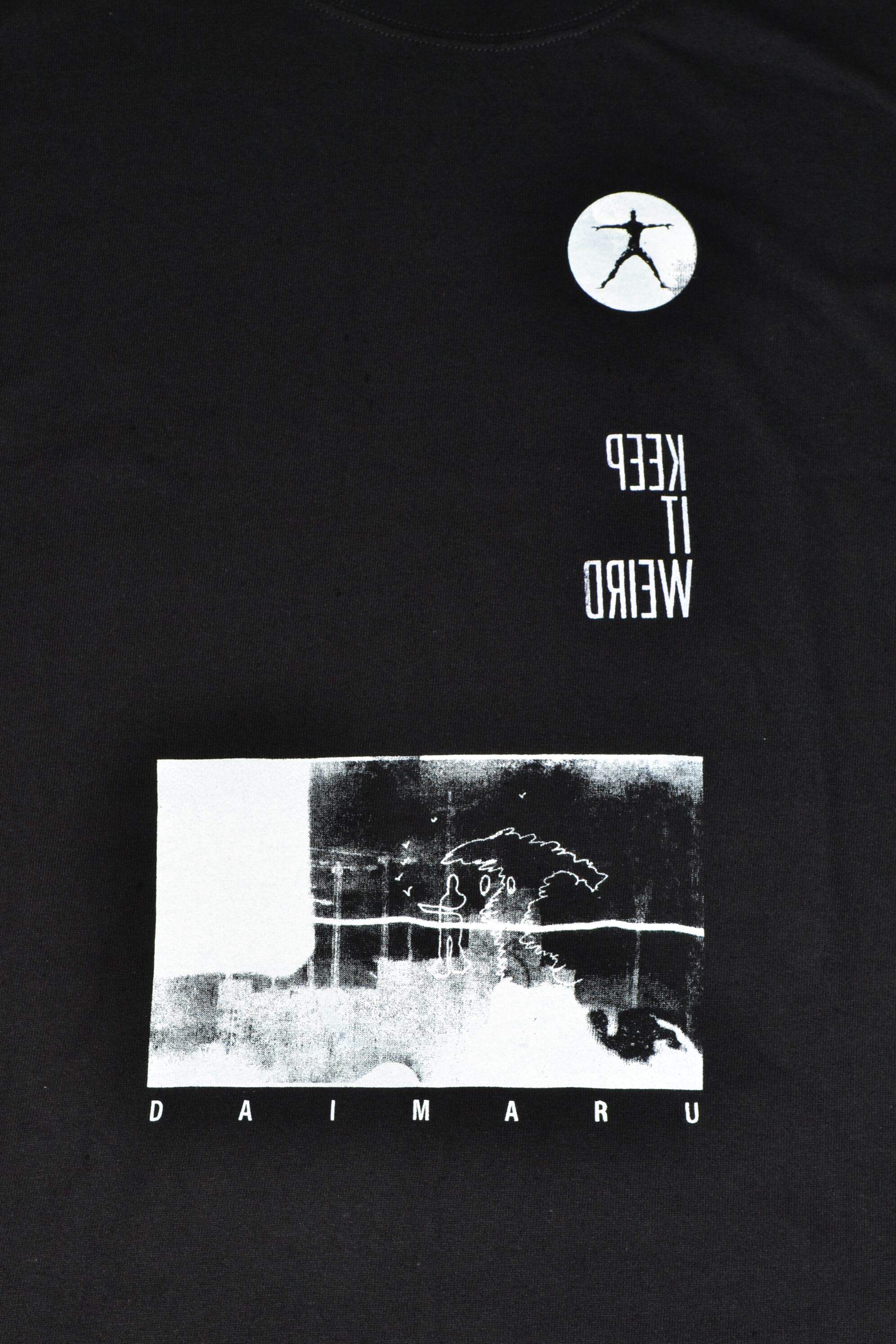 オランダのデン・ハーグを拠点に活動するアーティストの濱 大二郎と京都で活動する映像作家Masato TokumaruによるビジュアルユニットであるDAIMARUのシルクスクリーンプリントTシャツ。
